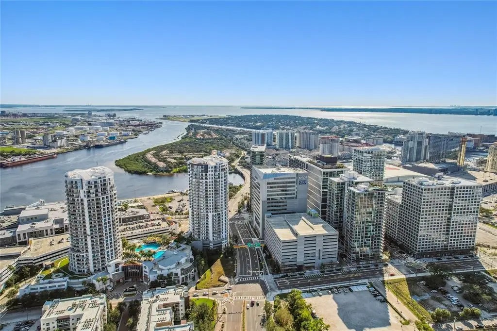 Brilliant condominium residence offering curated modern finishes with a one-of-a-kind oversized primary suite. A grand double door entry opens into a sophisticated versatile split floor plan offering over 1,700 square feet of interior space. Floor-to-ceiling windows, fitted with custom roller shades, complimented with stunning vinyl plank flooring throughout frame the stunning vistas from every room. This unit features two bedroom suites and three full bathrooms, with the primary suite highlighted by an office alcove, a custom closet system, dual vanities and a luxury shower. The gourmet kitchen is equipped with stainless steel appliances, granite waterfall countertops, and under-cabinet lighting. Each room offers direct access to an expansive 647-square-foot wraparound balcony and the best views of the Downtown Tampa Skyline, Water Street, Hillsborough Bay, Harbour Island and even the famous Towers of Channelside pool. Lease includes two reserved parking spaces, water/sewer, and Spectrum internet and cable. Residents of The Towers of Channelside enjoy an array of generous amenities including 24/7 security, an enormous -fifth-floor resort-style saltwater pool with heated spa and magnificent rock waterfall, two designated dog walk areas, outdoor grill stations, and access to the sizeable clubhouse. The Channel District neighborhood is adjacent to the Water Street District, Sparkman Wharf, the Tampa Riverwalk and Amalie Arena, with numerous entertainment and dining options. An extremely accessible and dog-friendly neighborhood where there are also many additional selections of coffee shops, fitness centers, dog parks and grocery stores.